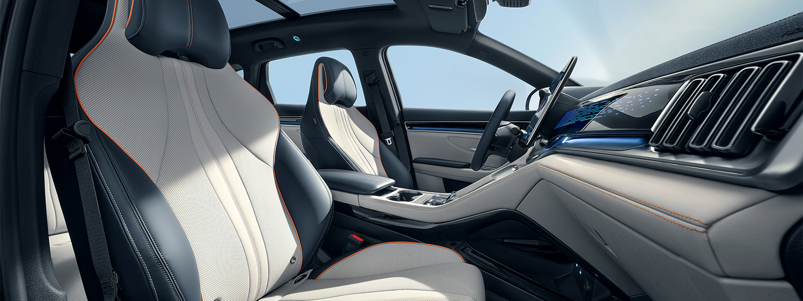 Dinamiskie sēdekļi:Priekšējie sēdekļi aprīkoti ar ventilāciju un apsildi, elektrisku regulēšanu un atmiņas funkciju, kas ļauj viegli pielāgot optimālu sēdpozīciju.